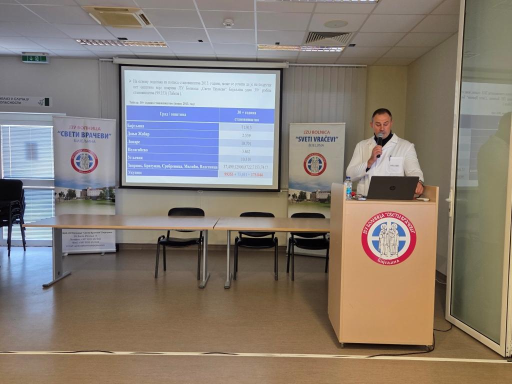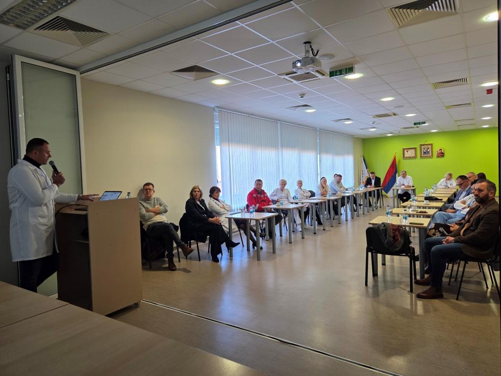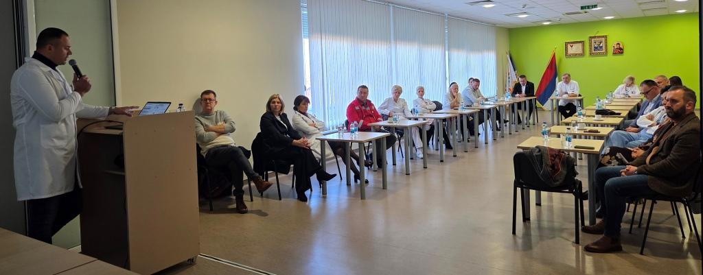 Радни састанак је одржан под називом "УНАПРЕЂЕЊЕ САРАДЊЕ И БРЖЕ ЗБРИЊАВАЊЕ ПАЦИЈЕНАТА СА ИНФАРКТОМ". Радни састанак одржан је са руководством и љекарима Болница Бијељина и Зворник, домовима здравља Бијељина, Угљевик и Лопаре, као и представницима приватних здравствених установа примарног нивоа здравствене заштите, ЗУСЦ "Кућа здравља" и СЦ " S+ Medico" из Бијељине. Испред Дома здравља састанку су присусутвовали прим.др Данијела Ђукин, директор Дома здравља Бијељина, др Гордана Савин, помоћник директора за медицинска питања као и др Бојана Палексић Докић, начелник Службе породичне медицине, др Славиша Митровић,начелник Службе хитне медицинске помоћи. Састанак је организован поводом обиљежавања пет година непрекидног, 24-часовног рада ангио сале, али и са циљем додатног унапређења организације и логистике транспорта пацијената са акутним коронарним синдромом од Дома здравља Бијељина до бијељинске болнице у што краћем временском периоду. Овим састанком показана је још једна у низу успјешних сарадњи Дома здравља Бијељина како са ЈЗУ Болницом "Свети врачеви", тако и са осталим здравственим установама. Присутни представници установа су током састанка сагледали резултате рада ангио сале у протеклих пет година, анализирана је статистика збрињавања пацијената са акутним инфарктом миокарда, те индентификовани сегменти система у којима је потребно додатно унапређење како би се скратило вријеме од појаве симптома до дефинитивног лијечења. Договорено је да се заједнички за шест мјесеци направи пресјек стања и процјени шта је унапређено након данашњих закључака, с циљем даљег скраћивања времена збрињавања и још бољег исхода лијечења пацијената са акутним коронарним синдромом.